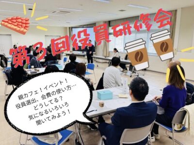 3月4日(水)金沢市教育プラザ富樫にて、第3回役員研修会が開催されました。 受付を済ませると、ドリンクコーナーにはコーヒーの良い香りが…! 研修会はおいしいコーヒーとケーキを楽しみながら、リラックスし...