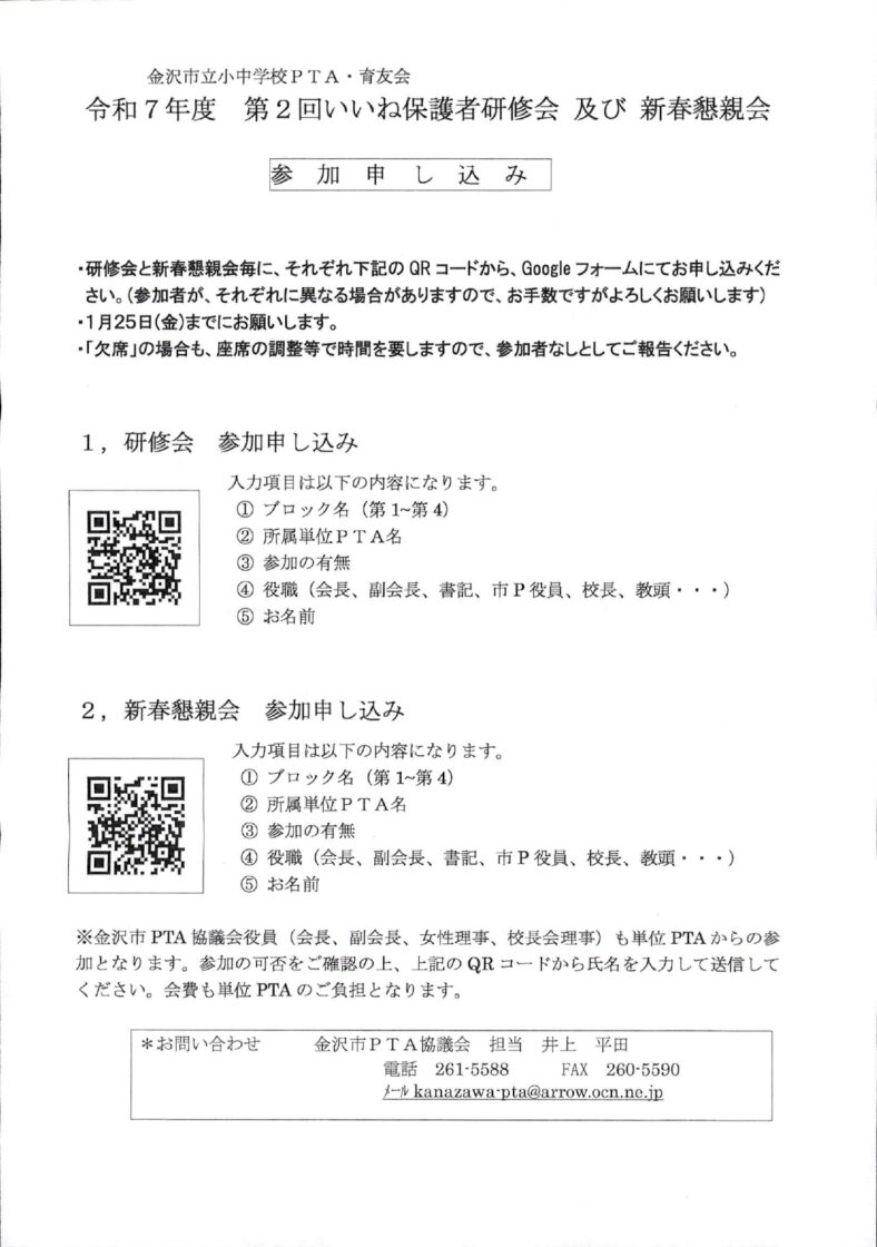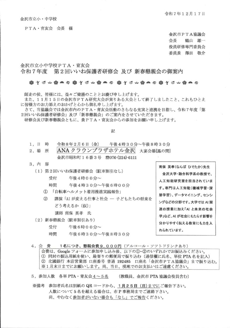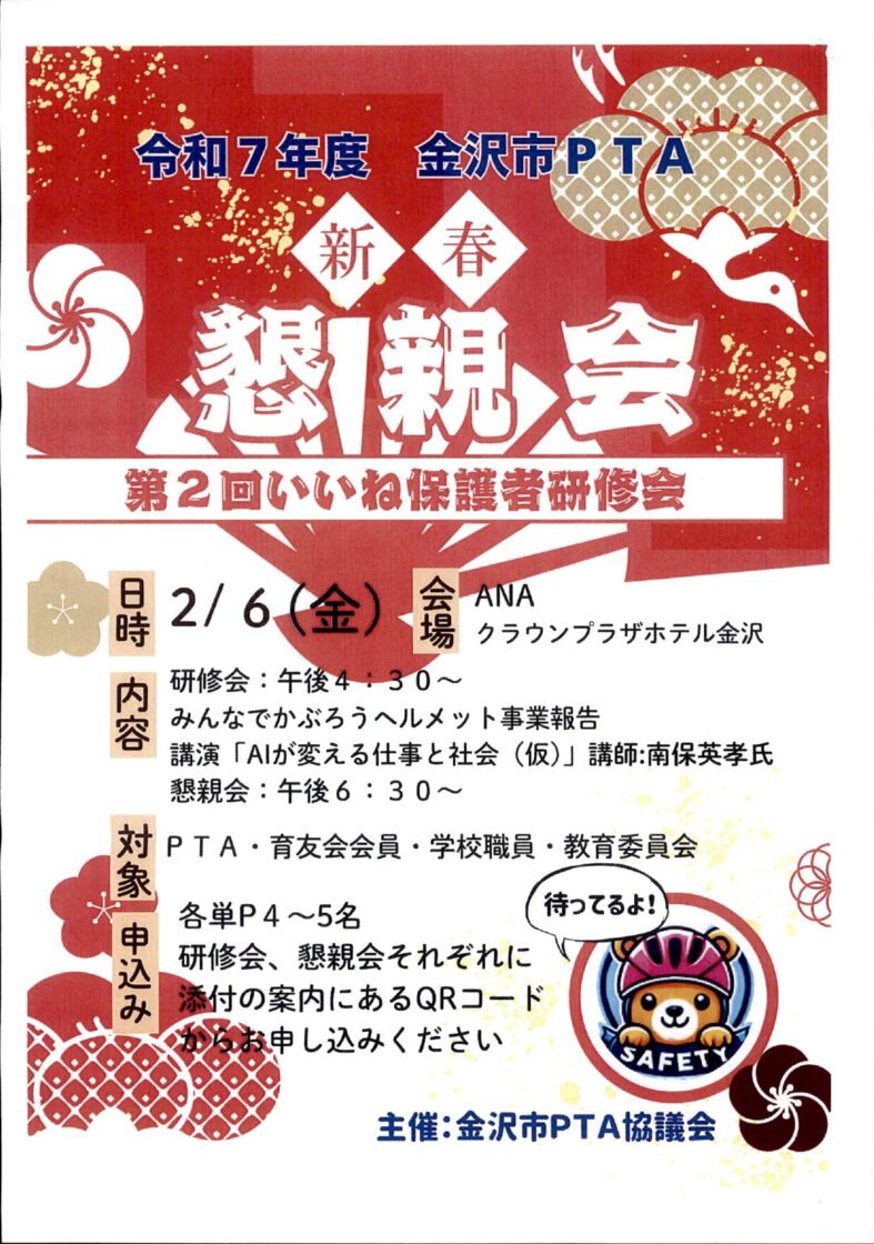 令和7年度 第2回いいね保護者研修会 及び 新春懇親会のご案内